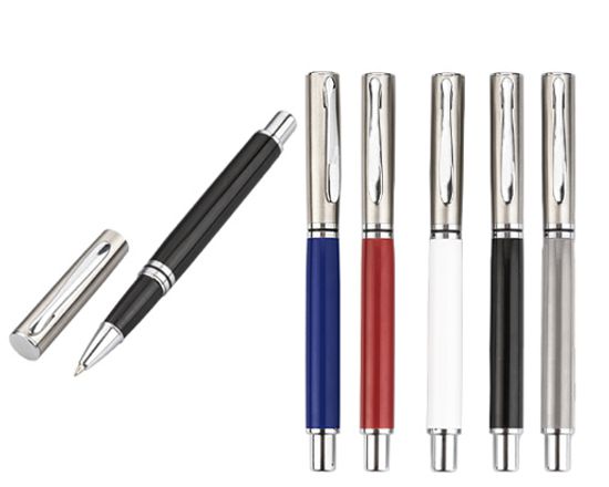 pluma metalica roller ball con tapa , tinta negra, publicidad en serigrafia o grabado laser