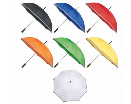 paraguas en poliester de 8 gajos,con funda , mango en material eva , publicidad en serigrafia